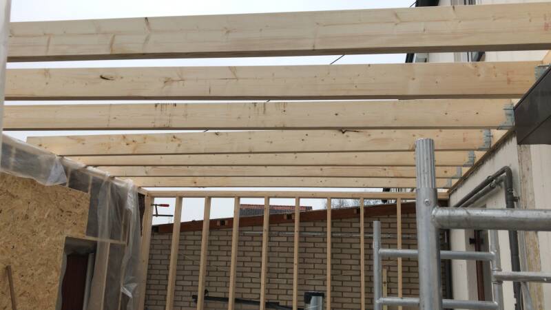 -Aanbouwen plaatsen in de vorm van hout skelet.